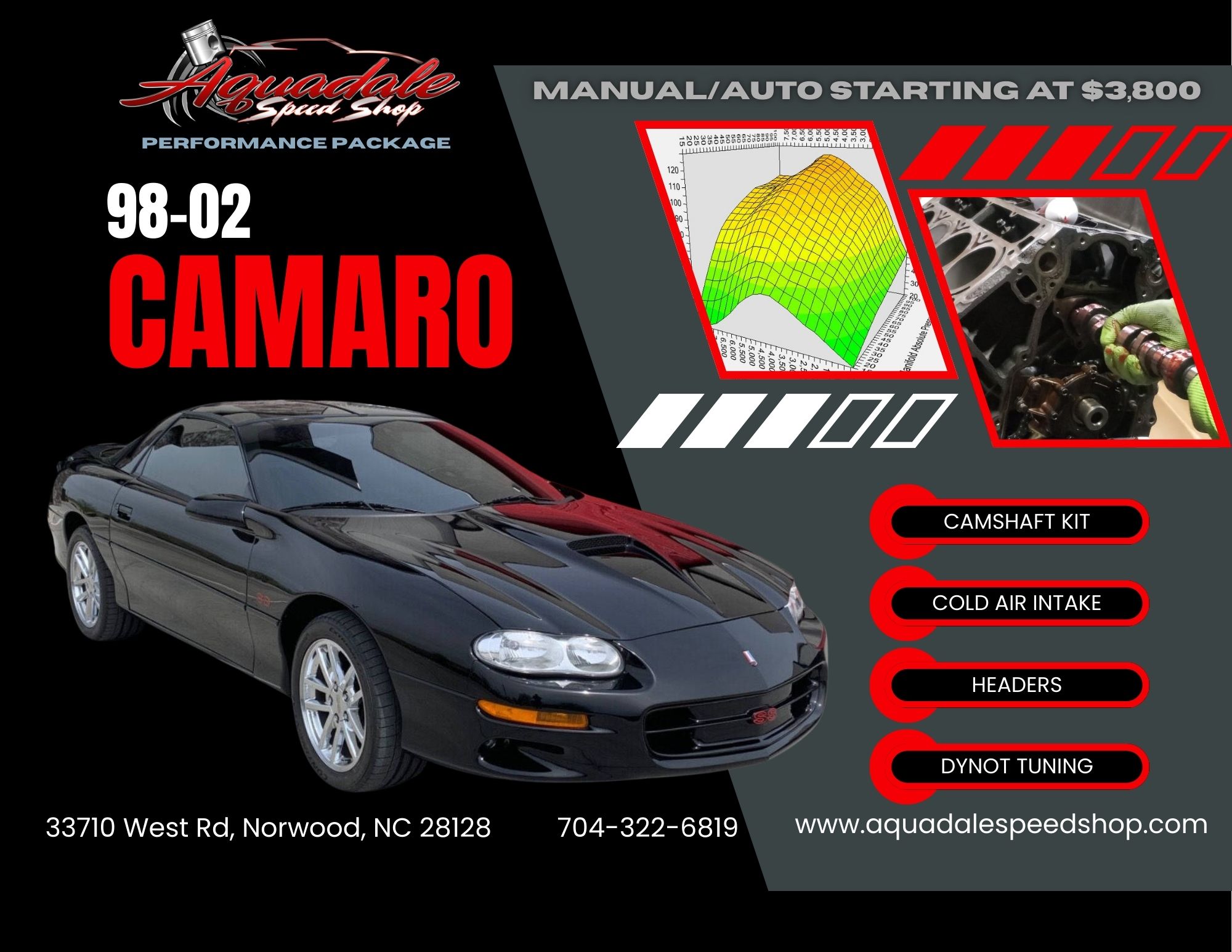Looking for more horsepower and better performance for your 1998-2002 Chevrolet Camaro? You have found a great package for your street car! We’ll add one of our Aquadale Speed Shop Custom Grind Camshafts with all the necessary parts to install, Performance Headers and a Premium Cold Air Kit. We’ll finish it all with a Custom Dyno Tune to maximize power gains and drivability with all the new additions. Package starts at $3,800 and we can discuss any specifics or if you would like any additional add ons! Give us a call or email us to schedule your Performance Package!