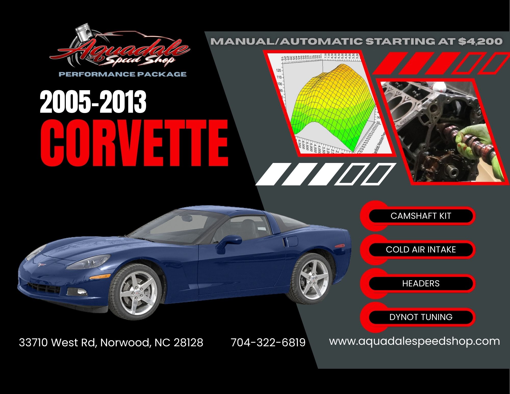 Looking for more horsepower and better performance for your 2005-2013 Chevrolet Corvette? You have found a great package for your street car! We’ll add one of our Aquadale Speed Shop Custom Grind Camshafts with all the necessary parts to install, Performance Headers and a Premium Cold Air Kit. We’ll finish it all with a Custom Dyno Tune to maximize power gains and drivability with all the new additions. Package starts at $4,200. Expected horsepower gains starting at 40hp and some customers seeing upwards of 100hp depending on combination! We can always discuss any specifics or if you would like any additional add ons! Give us a call or email us to schedule your Performance Package!
